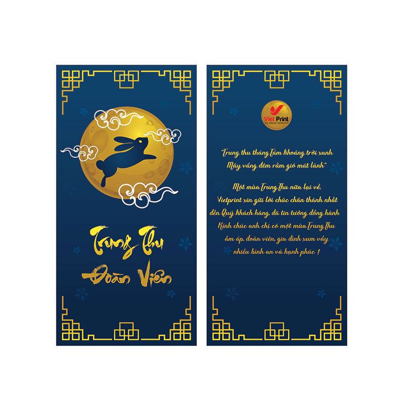 Thiết kế in ấn Thiệp Trung Thu trong phong tục người Việt, Tết trung thu là 1 ngày lễ rất có ý nghĩa. In thiệp Trung Thu là ý nghĩa của tình thân, của sự báo hiếu, của lòng biết ơn và của những thương yêu chân thành. Trong vô vàn những món quà để gửi tặng vào dịp này, người ta thường chọn chiếc bánh trung thu cùng với những tấm thiệp để nói thay bao lời chúc tốt đẹp. Để dịp rằm Trung Thu thêm ý nghĩa hãy gửi tặng người thân của bạn những tin nhắn chan chứa tình cảm và tốt lành.